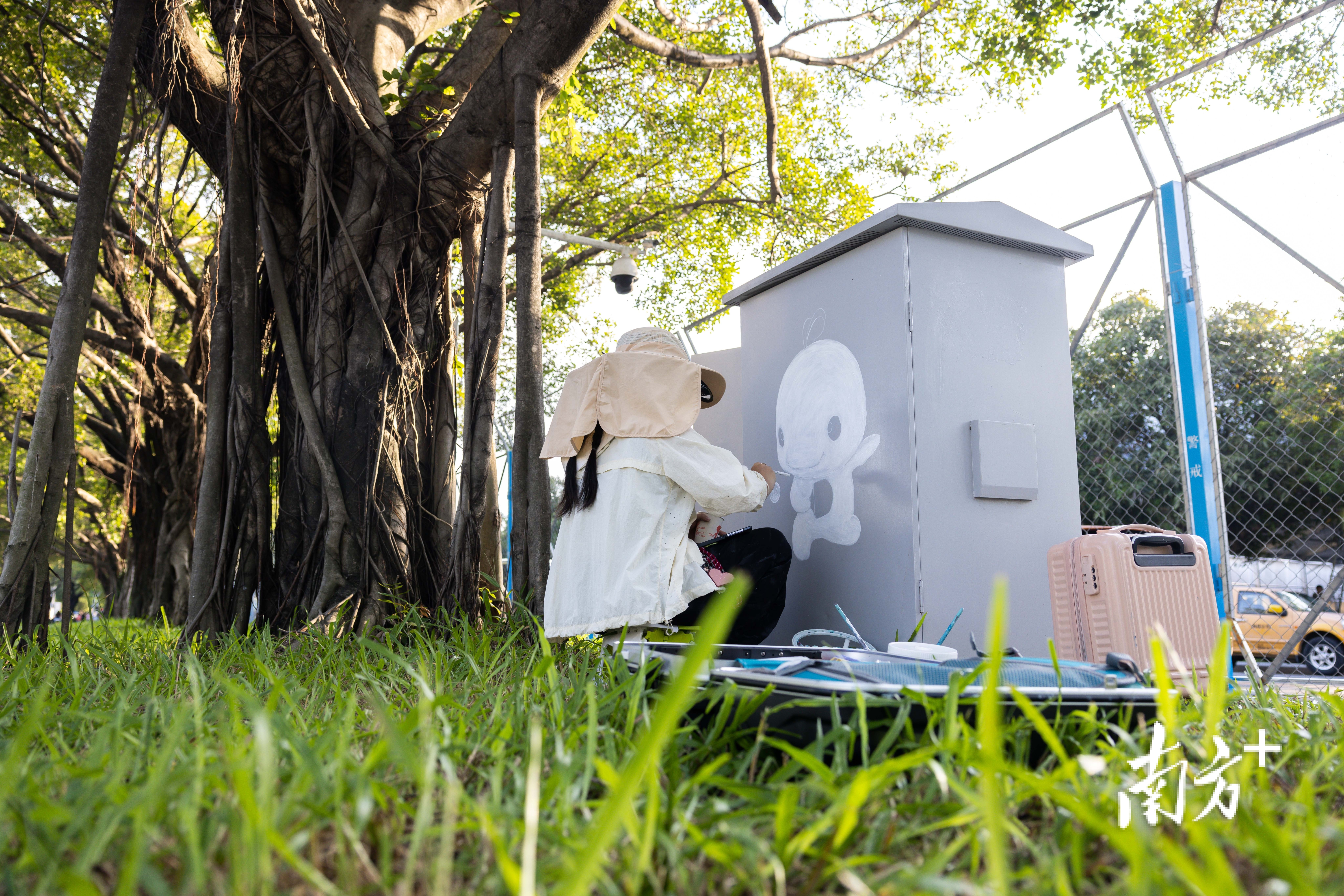 三十多℃的高温下,二十多天时间里,两个女孩绕着占地近百万平方米的广东奥林匹克体育中心,默默做着一件“小事”——为奥体周边数十个电箱穿上“新衣”,绘上第十五届全运会吉祥物“喜洋洋”和“乐融融”的运动造型。