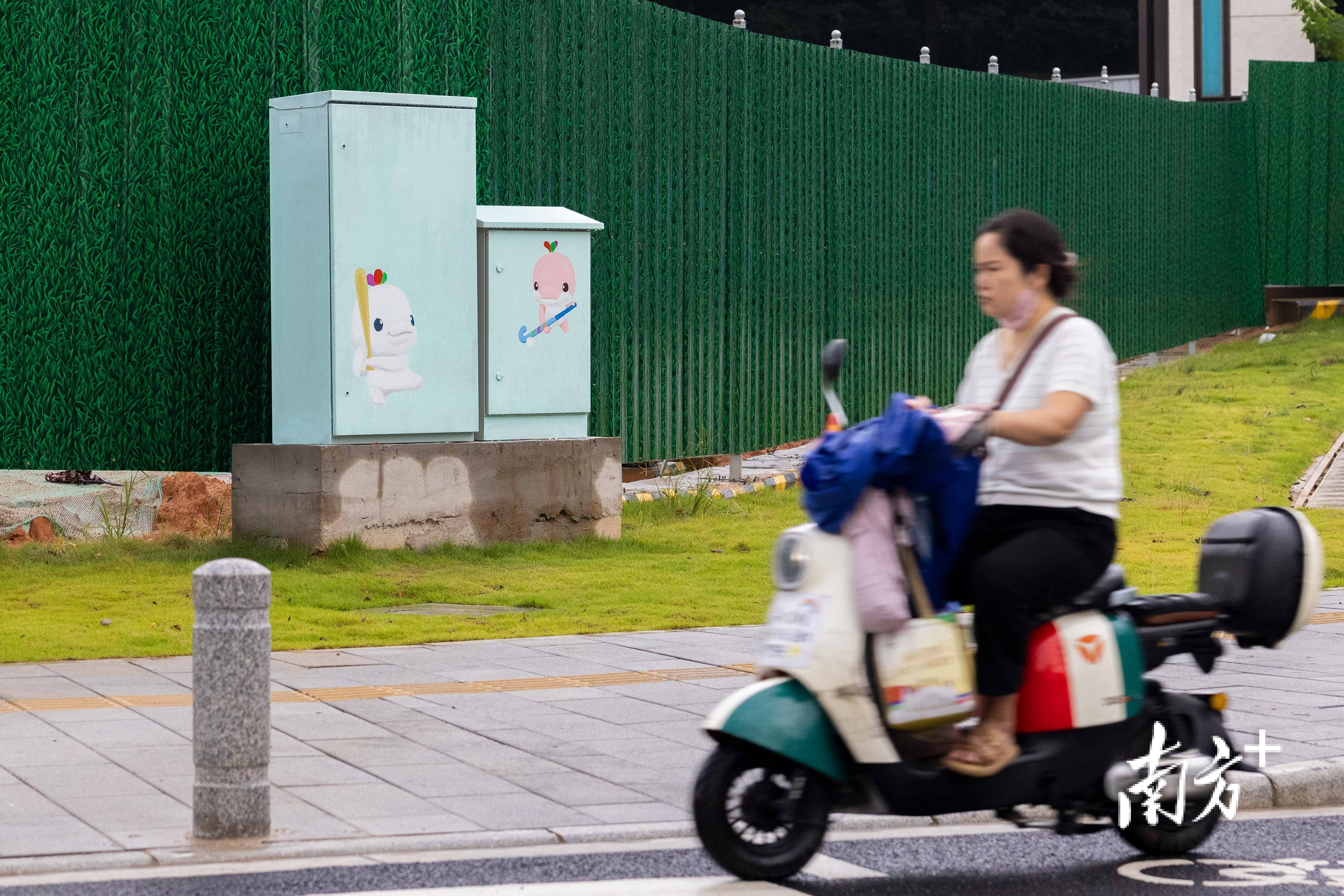 美化后的电箱成为奥体路上的一道风景线。